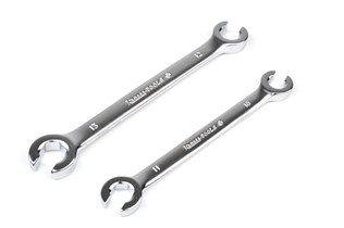Полированные хромированные трубные ключи, подходящие для соединений с длинной резьбой. 6-гранная головка на длинном конце и 12-гранная головка на коротком конце.