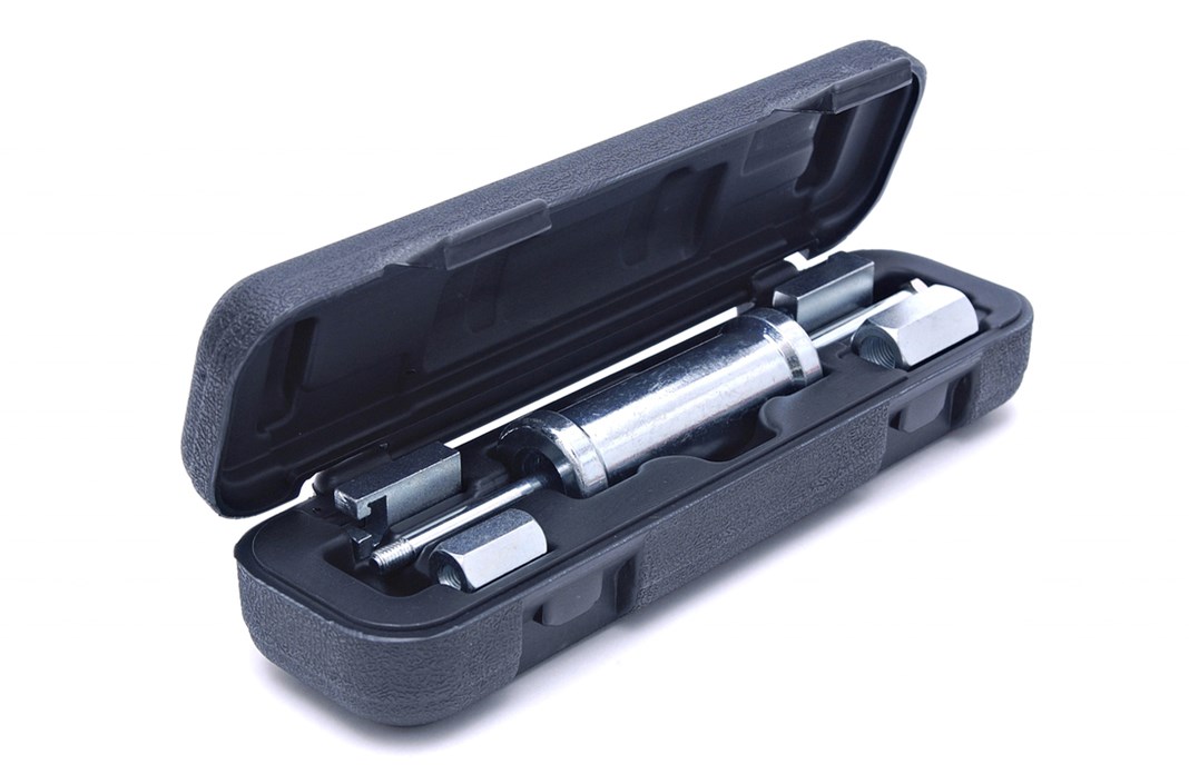 Satz mit 0,5-kg-Gleithammer und Adapter für den Ausbau festsitzender Diesel-Einspritzdüsen von 1.9 - 4.2 D/SDI/TDI VAG-Motoren. Der Adapter wird über ein Gewinde oder mit Haken unter dem Düsengehäuse an der Einspritzdüse befestigt.