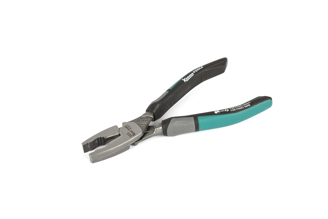 Combination pliers forged from high-quality chrome vanadium steel. Newly developed 3-component handles with improved maneuverability, cushioning, and grip. Gripping and cutting function. Delivered packaged on a hanger.