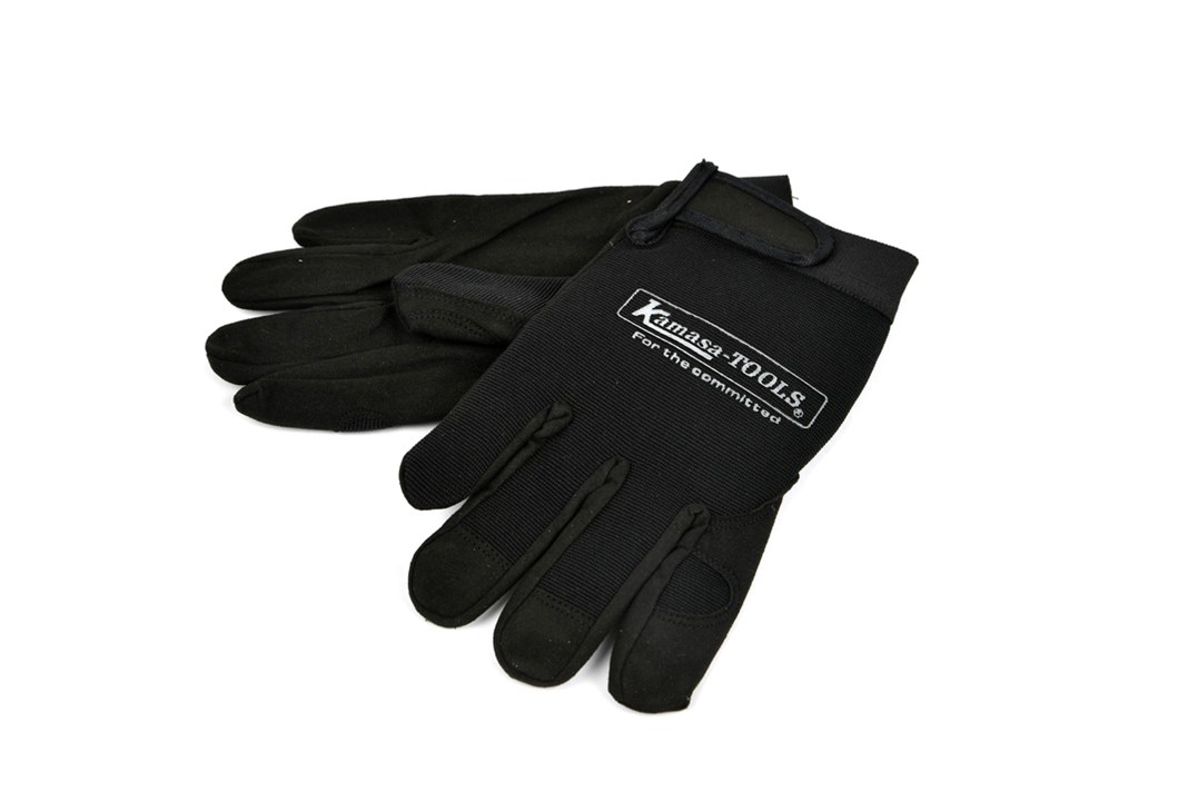 Work gloves with synthetic suede on the underside, stretch material for a good fit on the upper side and carbon tape over the wrist.