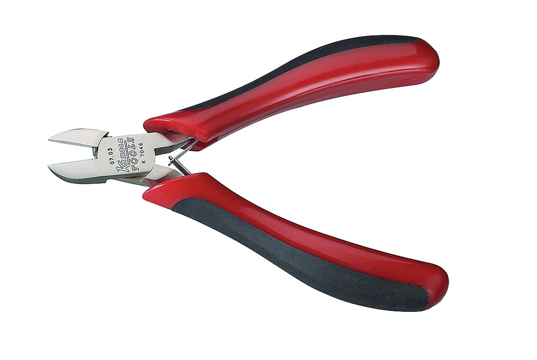 Small, user-friendly carbon steel pliers with rubberized handles and durable return spring. Cuts 2.0 mm copper wire, 1.0 mm steel wire and 0.5 mm hard steel wire.