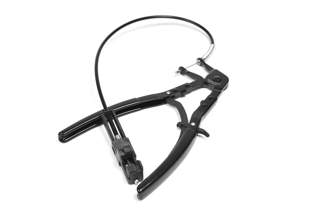For installing and removing hose clamps with spring-action, with pointed ends, on modern VAG 2.0 TDI engines: BKD. Among others, VW Passat from 2005, Touran, Golf V, SKODA Octavia, AUDI A3. Especially suited for the hard-to-reach lower radiator hose, with the 630 mm flexible wire. Max. clamp diameter: 55 mm