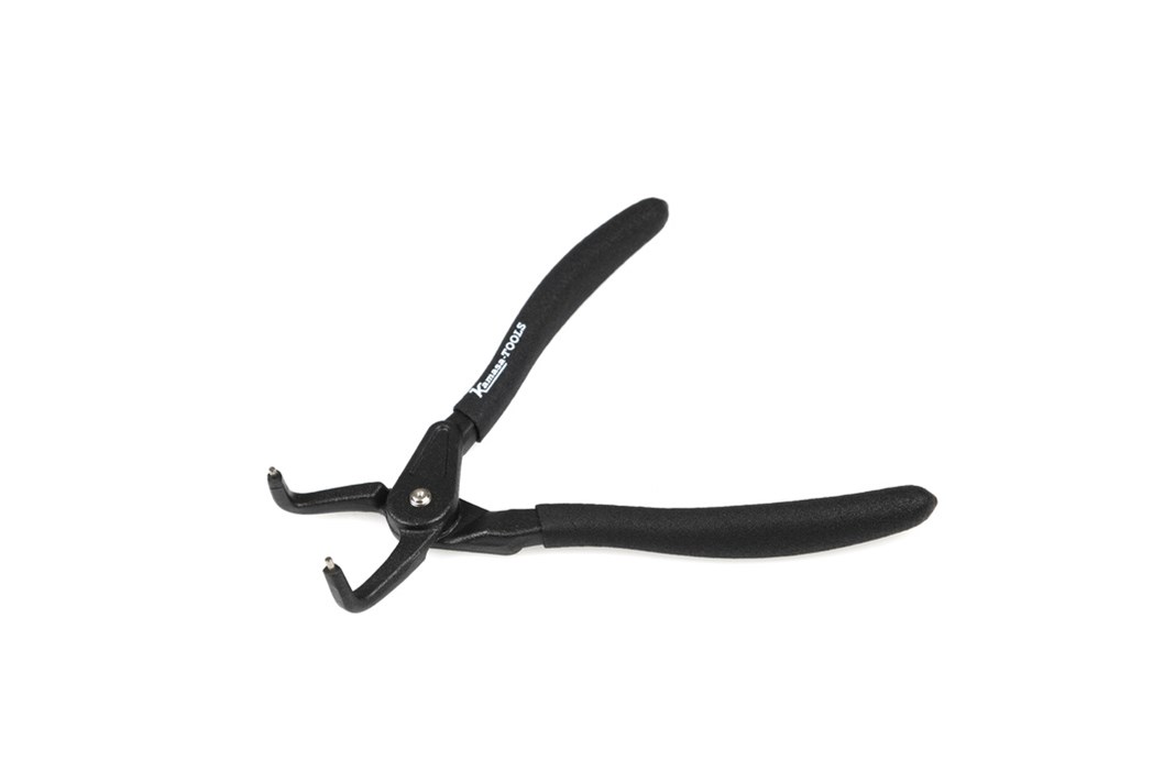 Lock ring pliers with curved jaws. Forged of chromium nickel steel with tips in hardened special steel.