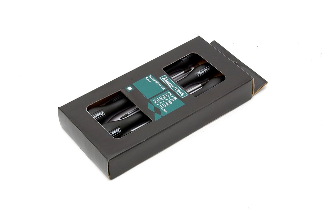 A set with a wide range of screwdrivers covering most of all TORX® screw heads. Long, rubberized handles with wide body for maximum turning power. The small front diameter makes for fast tightening and loosening of screws.
