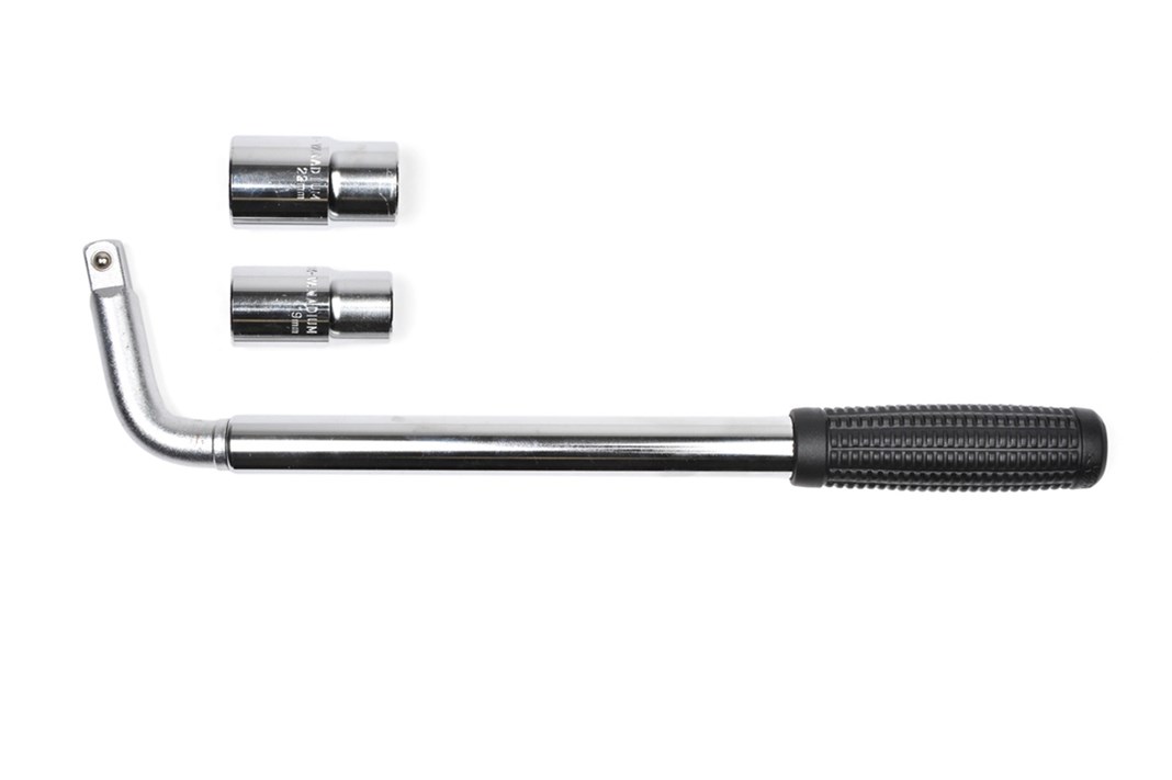 Chromed and extendible to 550 mm. 2 reversible sockets.