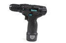 A compact, small and lightweight cordless drill and driver with high and low gears, 10.8 V, 1.5 Ah. Ergonomic handle with rubber pad for best grip and LED lighting. Sturdy 10 mm quick chuck with spindle lock function. Powerful motor with replaceable carbon brushes, 10 torque settings and drilling position. Supplied in a plastic box with 2 x 1.5 Ah Li-Ion batteries and charger.