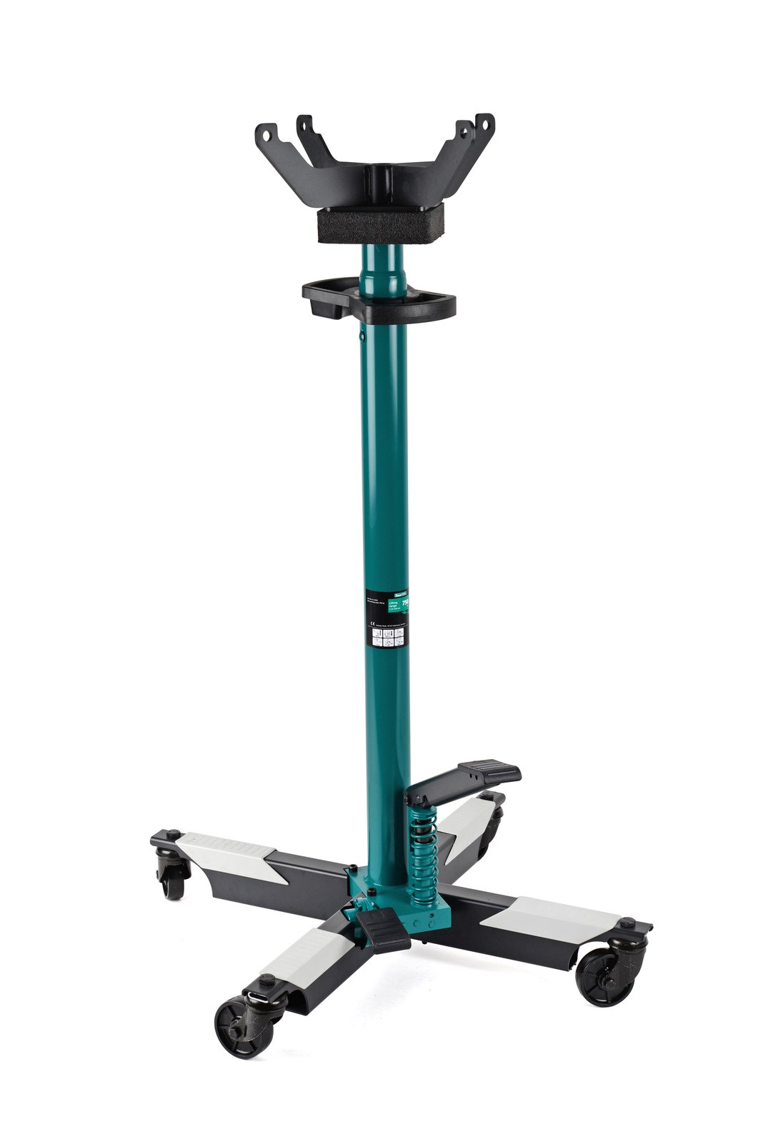 A stable, powerful transmission jack which provides excellent support for both transmission work and a variety of other operations on raised vehicles, including fitting exhaust systems, and can be used to support a container during oil draining. Lowering Control System (LCS) as standard. Other features include overload valve and dead man's switch.