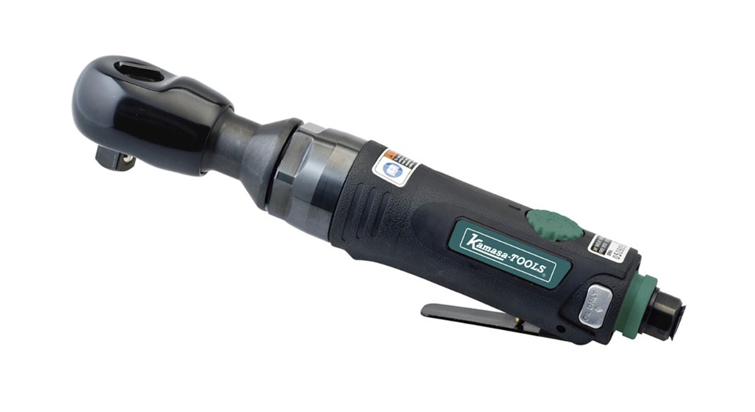 Heavy-duty ratchet wrench with ergonomic design suitable for, e.g., exhaust and clutch jobs. Heavy-duty lock mechanism, rubberized head, and planet gear gives longer life. Adjustable working torque and forward and reverse control. Accurate control of the power throttle setting.