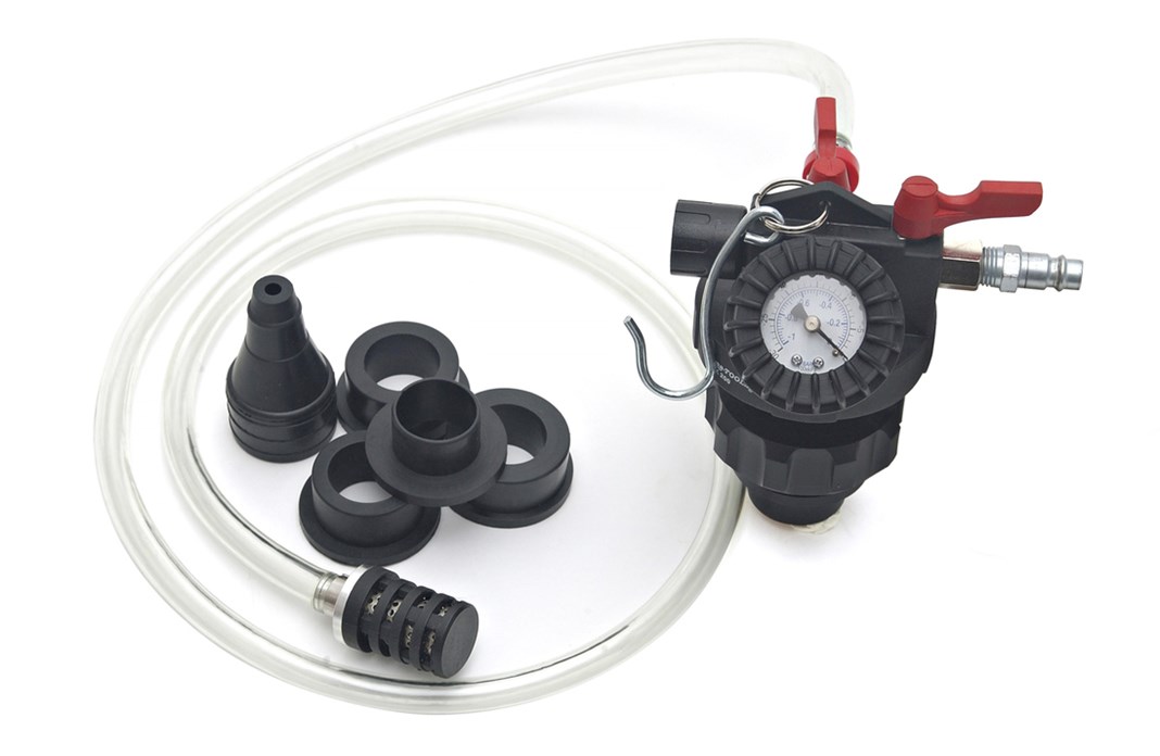 Tõhus tööriist jahutussüsteemi täitmiseks ja õhumullide vältimiseks. Suruõhu abil tekitatakse jahutussüsteemis vaakum ja manomeetri abil on võimalik kindlaks teha lekke olemasolu süsteemis. Tarnitakse koos kuue adaptriga, mis sobivad enamikule jahutussüsteemidest.